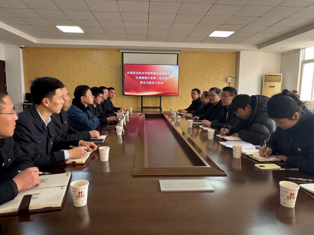 1月13日上午,日照职业技术学院智能冶金综合党支部与日照钢铁控股集团有限公司行政第一党支部,在日照钢铁党员活动室联合开展“党建引领聚合力 联建共建促发展”主题党日活动。活动由智能冶金(系)负责人杨强主持。